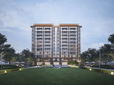 建筑美学:小高层顶部选取古代宋式官帽元素设计,寓意仕运亨通;叠墅以米白色为基调,局部深灰点缀,香槟金铝条点缀玻璃光感界面