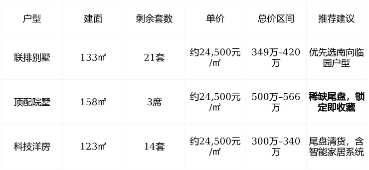 联排别墅:25栋,建面133–158㎡,户户带50–80㎡私家庭院