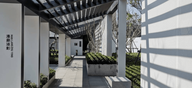 社区园林:内部设计融合苏式园林元素,含中心水池与亭台