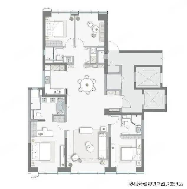 大平层:190㎡(四房两厅三卫)、220㎡(四房两厅三卫)、249㎡(四房两厅三卫)