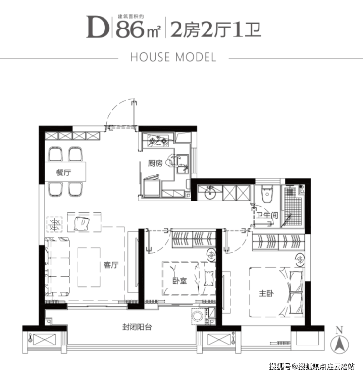 86㎡三房两厅一卫:紧凑实用,适合年轻家庭或投资客;