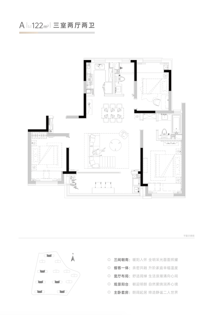 【建面122㎡3居】240.0-260.0万美田锦华澜轩售楼处电话:4008529793