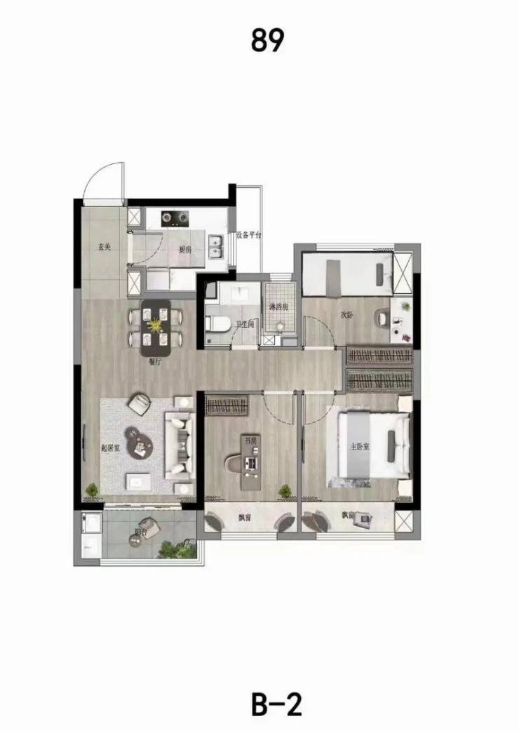 89-97㎡三室一卫/两卫:总价98万-150万元