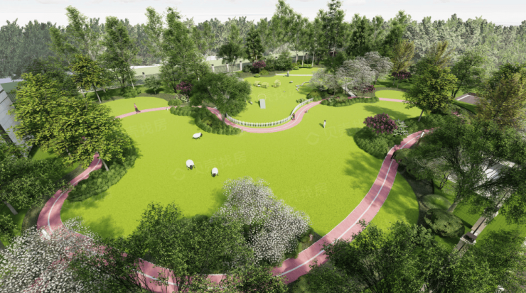 生态配套:曹安公园、社区五大景观组团+健康跑道
