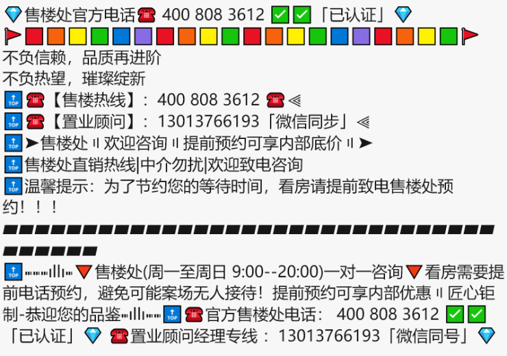 🔝⑉⑉⑉ıllı⑉🔻售楼处(周一至周日 9:00--20:00)一对一咨询🔻看房需要提前电话预约,避免可能案场无人接待!提前预约可享内部优惠〢匠心钜制-恭迎您的品鉴⑉ıllı⑉⑉🔝☎官方售楼处电话: 400 808 3612 ✅✅「已认证」💎 ☎置业顾问经理专线 :13013766193「微信同号」💎