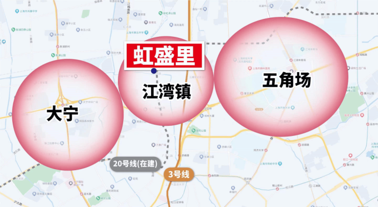 【虹盛里】将双轨交环绕,一条通往城市中央的节点性CBD,一条通往大宁、五角场等北上海重要商圈。