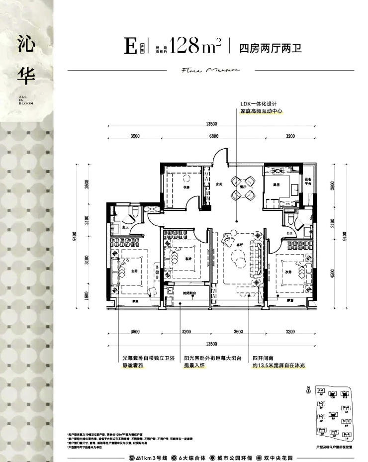 项目主力户型建面约99–139㎡,覆盖刚需三房至改善四房,精装交付,总价友好: