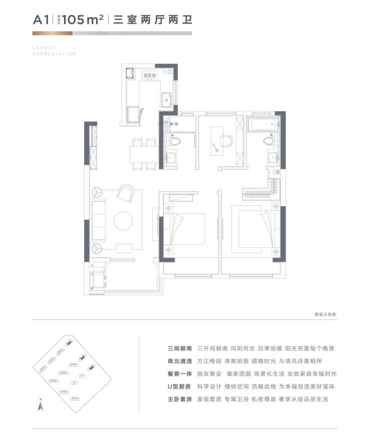 -【建面105㎡3居】,分布于11幢,1梯2户,层高3.00米,总楼层26F,价格待定。