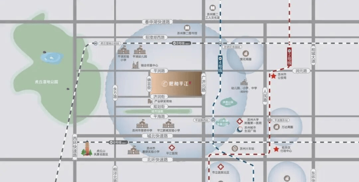 项目位于广济北路与平润路交汇处北侧,地处姑苏区平江新城核心区域。作为苏州古城区发展的拓展区和城市副中心,平江新城具有承东启西的重要作用