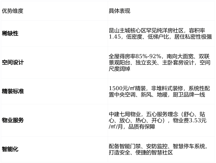 竞品对比:相较昆山城东其他项目(如中瑞商业广场、海玥云庭),锦鸣雅居在低密纯洋房属性、央企开发背景、学区直配、精装标准上具备显著优势,尤其在300万–500万总价段,其稀缺性无可替代。
