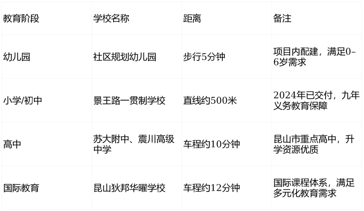 锦鸣雅居是昆山城东少有的“学区洋房”,教育配套实现从0岁到高中的全龄段覆盖: