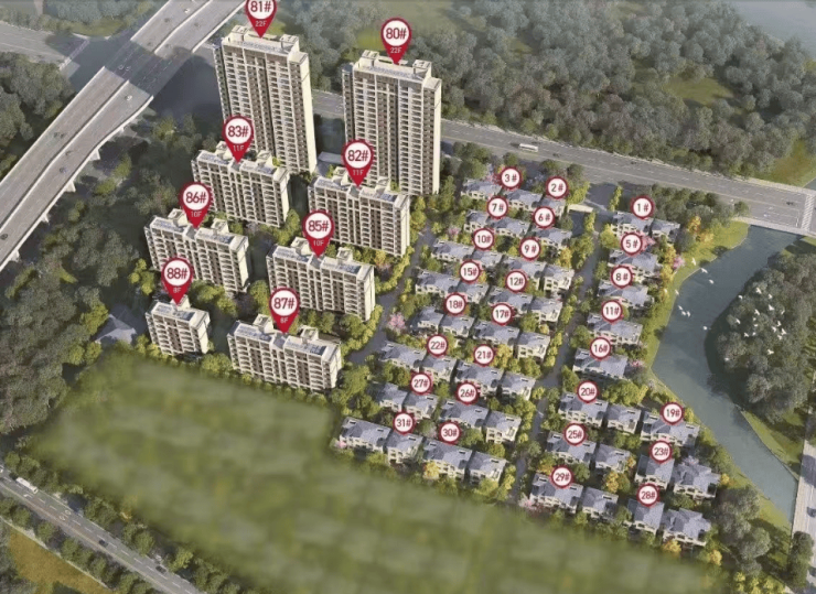 项目规模:总占地约6.5万㎡,总建面13.2万㎡,规划513户(含129套别墅+384套公寓)