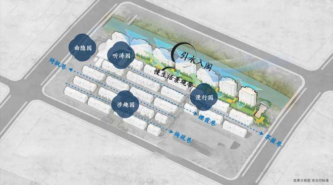 项目秉持“借景共融”的造园理念,引入太湖水入园区,亲水架空泛会所,并以景观步道串联四重园林,营造尊归家体验。