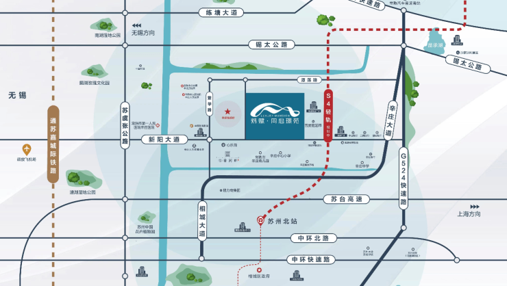 轨道交通规划:苏州S4轨交规划在辛庄设站,距项目约2.2公里,未来可无缝接驳地铁2号线,直通苏州主城,提升区域潜力。