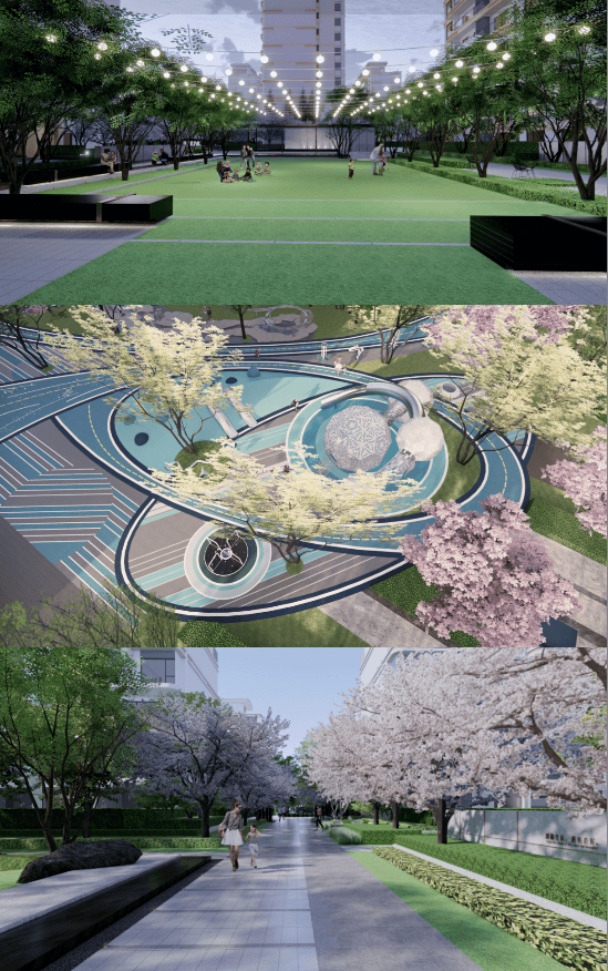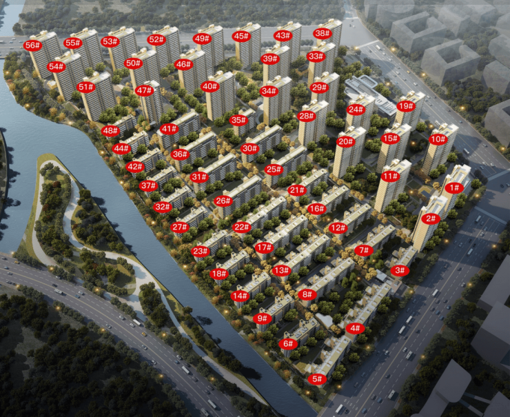 绿化率30%,园林融合江南水系设计,打造“一河一园一社区”格局。