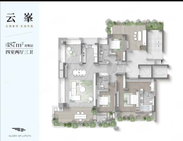 187㎡四房两厅三卫环幕边厅270°环绕露台、独立衣帽间终极改善家庭