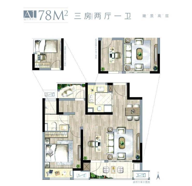 恒力健康城推出的78㎡户型,巧妙地布局了三房两厅一卫,充分利用了有限空间。其南向三开间配置,加上约5.1米宽的南向双阳台,不仅提供了宽敞的采光面,还确保了空间布局的紧凑与高效。