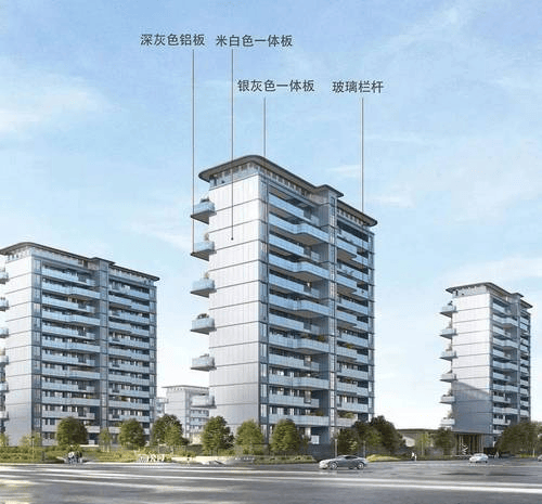-立面造诣:干挂铝板与玻璃结合,流线曲线勾勒弧面造型,南北双阳台实现360°无遮挡视野,筑就苏州湾至美天际线。