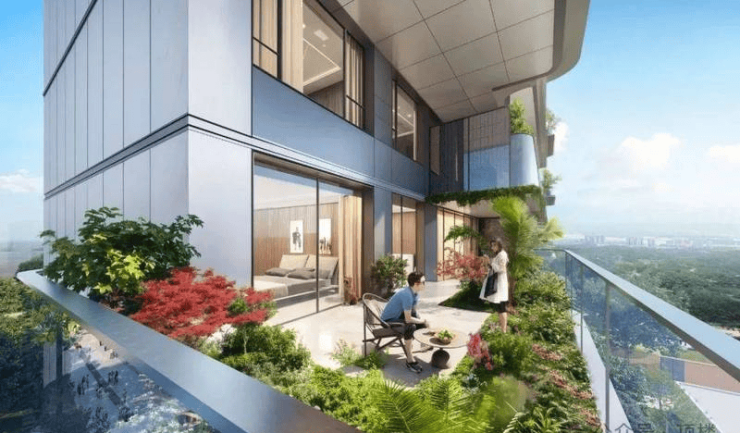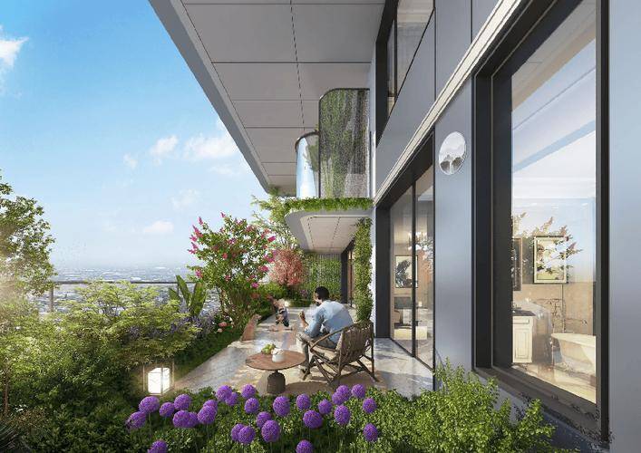 -露台哲学:约60公分降板预留覆土空间,南向巨幕露台可打造空中花园,让每一户都拥有“私属庭院”。