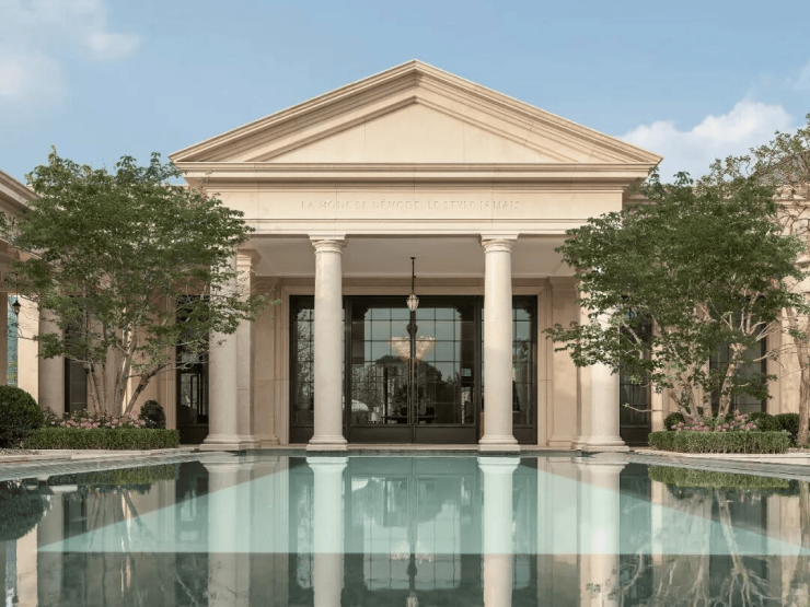 纯南法风情设计:南区为三层法式合院,对标希腊安缦酒店,采用白色石材打造宫殿感建筑。