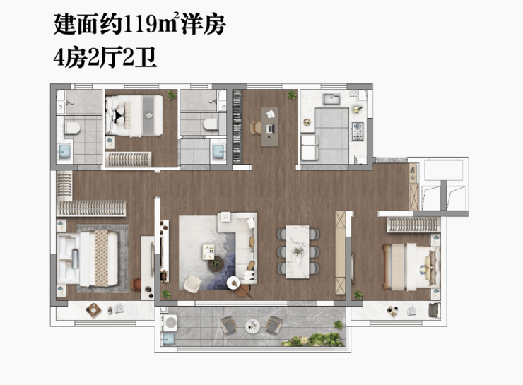户型也是购房者关注焦点。项目精心规划四大户型,其中洋房为一梯两户,建筑面积约 82 - 119㎡;小高层是两梯四户,建面约 90㎡的三房户型。首开时,这四个户型房源都将推出。目前项目仅建面约 119㎡的洋房户型公开实体样板间。该户型为 4 房 2 厅 2 卫设计,是熙樾府所有户型中面积最大的。整体户型四开间朝南,拥有约 6m 宽屏大横厅,尺度感十足。餐客厅一体设计,既增加活动空间,又让室内采光更通透,兼顾实用性与舒适度。
