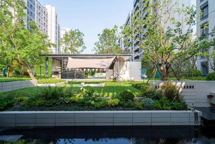 项目自身亮点也不少,目前熙樾府已处于准现房状态。踏入社区,米白色与浅灰色交织的真石漆外立面,搭配局部铝板,尽显现代大气风范。社区内部不仅有局部绿化展示,还在大面积草坪上布置了露营椅,未来这里将成为业主户外活动、交友聚会的绝佳空间。