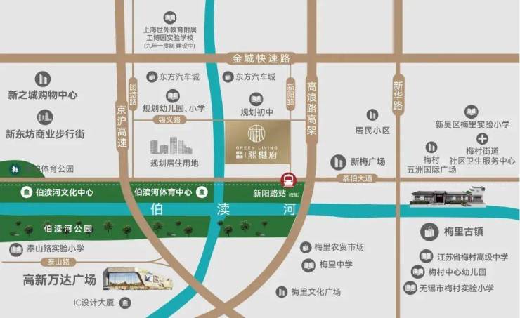 该项目坐落于新吴区泰伯大道与新阳路交叉口西北侧。