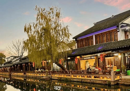 项目毗邻5A级周庄古镇,定位“长三角度假中心”,融合江南水乡建筑风格,含篮球场、儿童乐园等设施