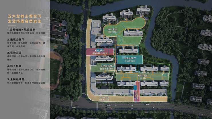 社区规划环形跑道、全龄活动区及四时花园景观