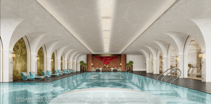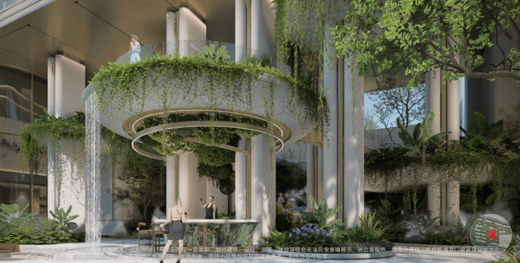 首创“云间三瀑”立体水景系统:利用10米高差打造下沉式森瀑园林,水流层叠而下,镜面水景倒映天光;