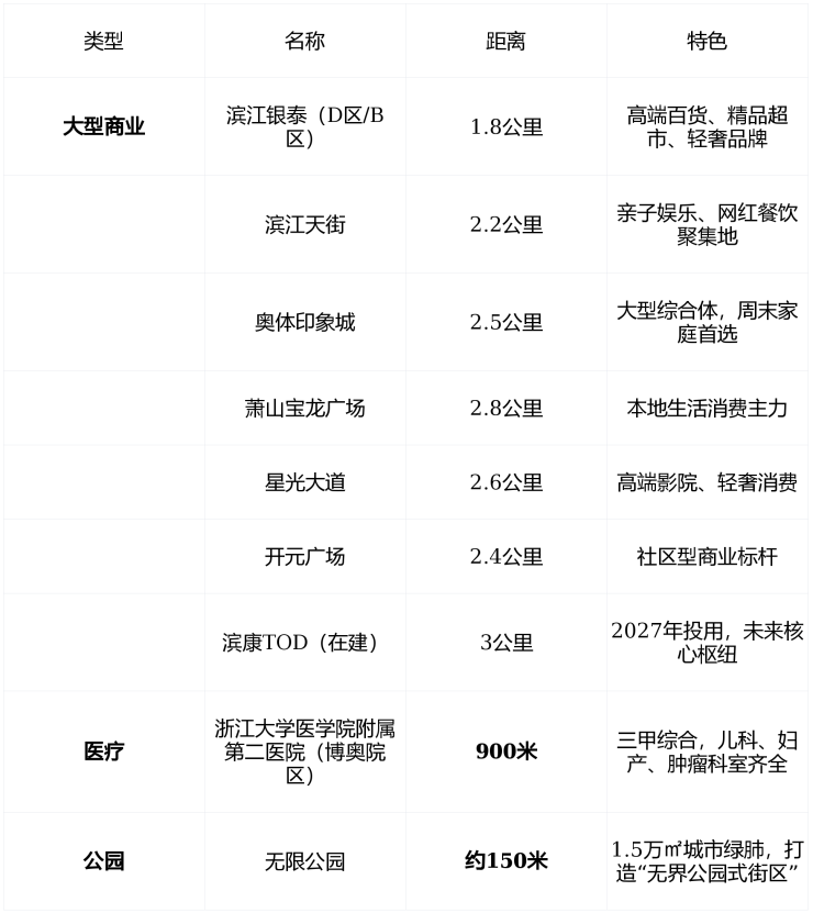 通勤优势 :无论是去滨江互联网企业、奥体赛事场馆,还是西湖景区,均实现“15分钟生活圈”全覆盖。