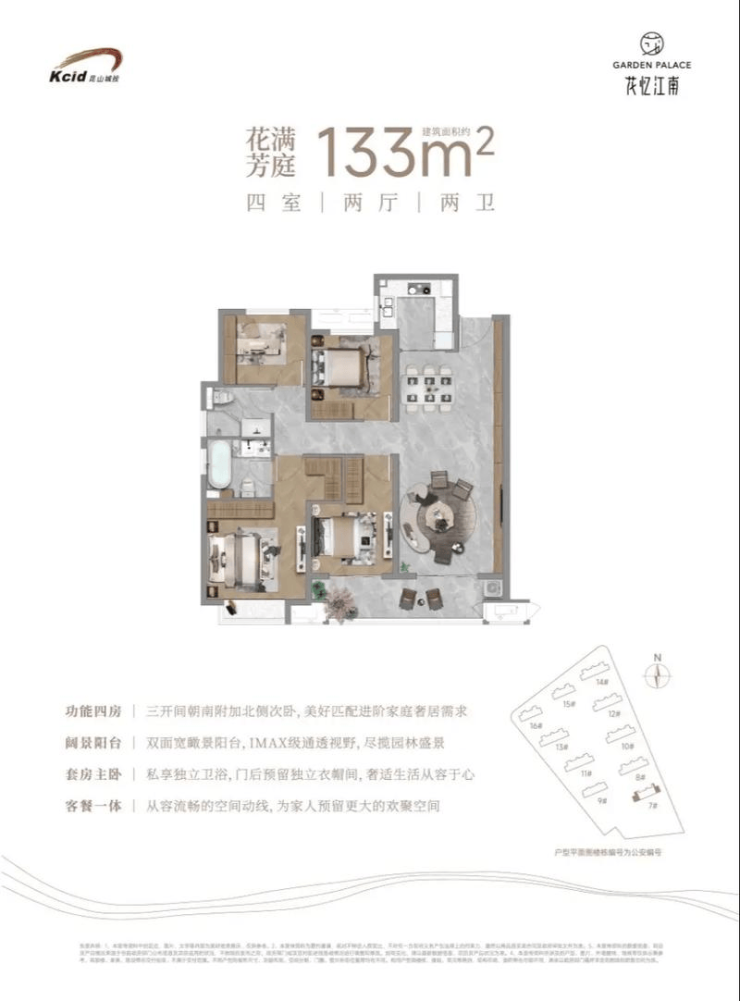 133㎡四室两厅两卫:总价约239.4万(均价18000元/㎡起)。