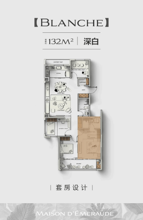 132㎡户型:四房两厅两卫,功能齐全,动静分区合理,满足多代同堂需求。