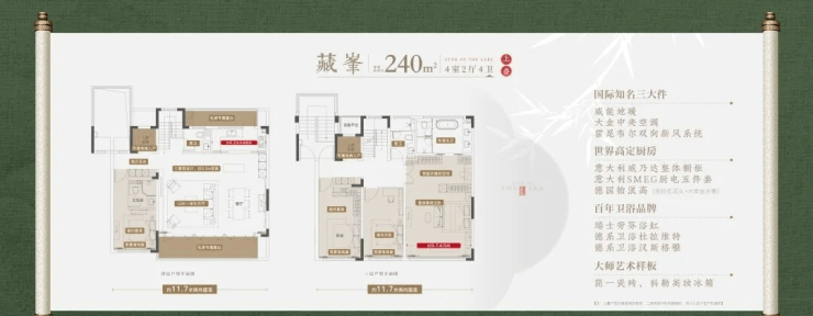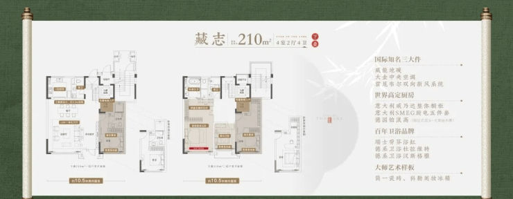 叠墅:210-240㎡四居,采用"一栋双叠"设计,下叠赠送约120㎡南北双花园