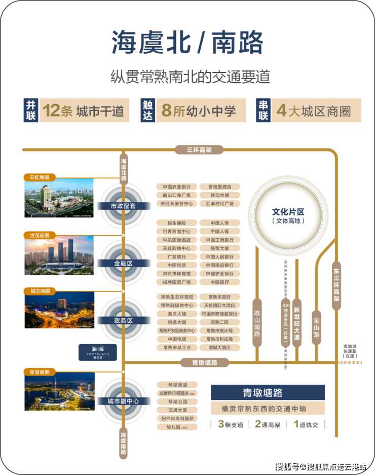 “虞溪阁 400 998 3631 ”位于海虞路、青墩塘路两大主城黄金轴交叉中心,横贯常熟东西的交通干道,起于城市内核,延至三环高架,串联主副城区通达全市。附近各类丰富资源皆汇聚于此: