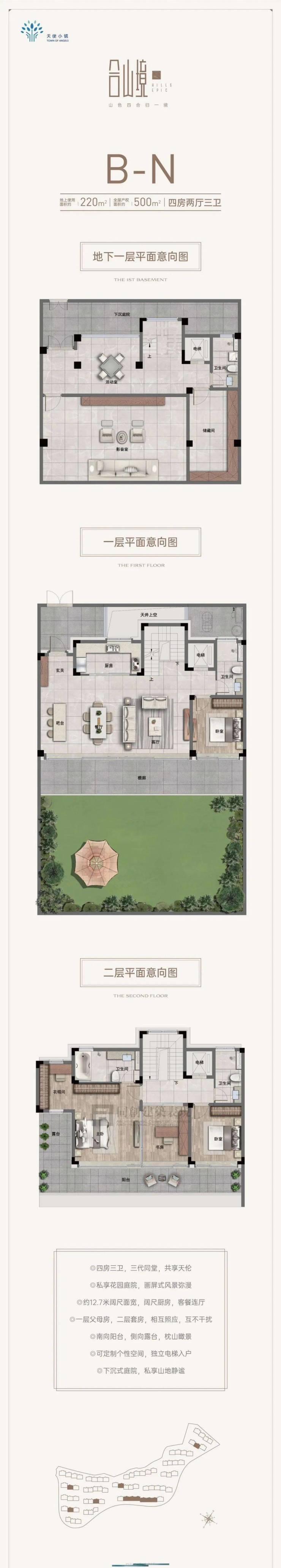 天使小镇合山境4009983632别墅的面积段为160平方,220平方,260平方,花园面积为85-450㎡,精装交付,总价700万起。这里的别墅不仅宽敞舒适,而且内部装修精美,让您可以尽情享受高品质的生活。同时,项目周边生活配套齐全,医疗设施完善,教育资源成熟,交通方便,让您可以轻松地获取所需的各种服务和设施。