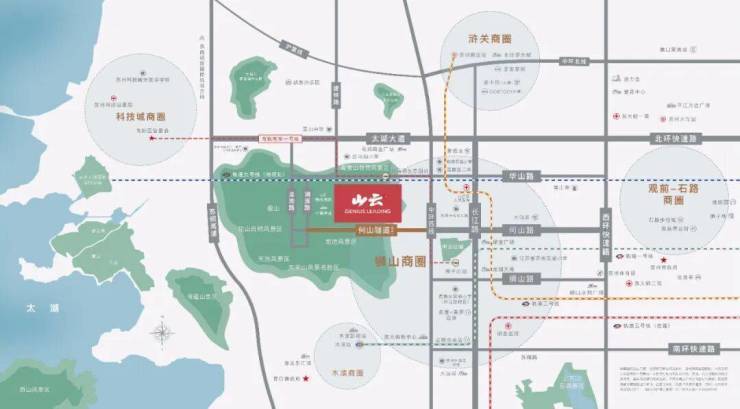 道路 :紧邻 何山隧道出口 (即将开通),直达狮山商圈、高新区核心区,车程10分钟内