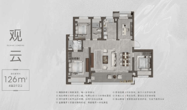 产品定位清晰 :主力户型为 126㎡–227㎡ ,涵盖8层精装洋房与4层简装叠墅,南北通透、全景阳台、私家电梯入户