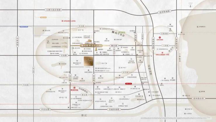约2.9公里的狮山路,连接着京杭大运河与狮山文化广场,一半狮山一半湖的狮山公园触手可及,狮山龙湖天街、金鹰、淮海街共同交织的生活图景目不暇接,苏州博物馆(西馆)、狮山大剧院等林立的文化艺术原址挥洒着当代松弛栖居的人居理想。