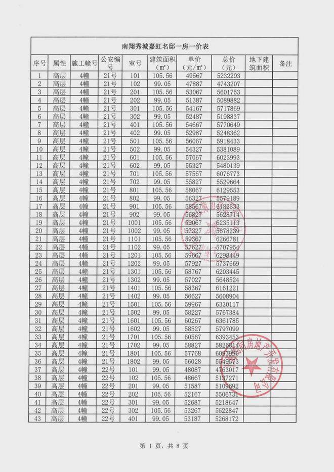 虹桥嘉悦府项目一房一价表: