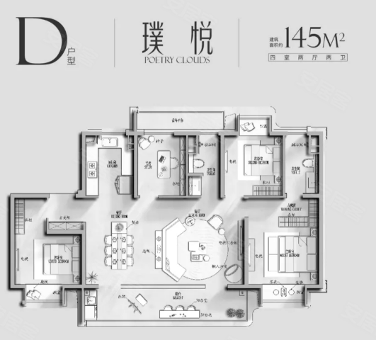 规模:占地1.6万㎡,建面3.13万㎡,6栋16-17F小高层,共259户,容积率1.95,绿化率35%