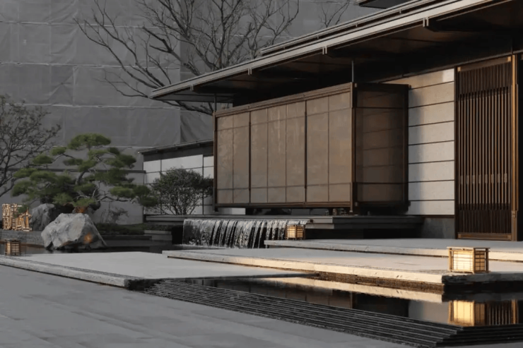 内部景观:打造“一轴八园十二境”中式园林,含中央水景、樱花步道、阳光草坪