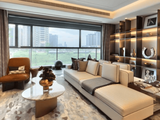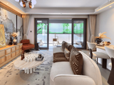 马可波罗60cm*1.2m瓷砖、水墨江南复合地板、客厅岩板背景墙+皮革沙发背景墙+主卧皮革硬包背景墙、全屋墙纸,增配客厅柜+阳台柜