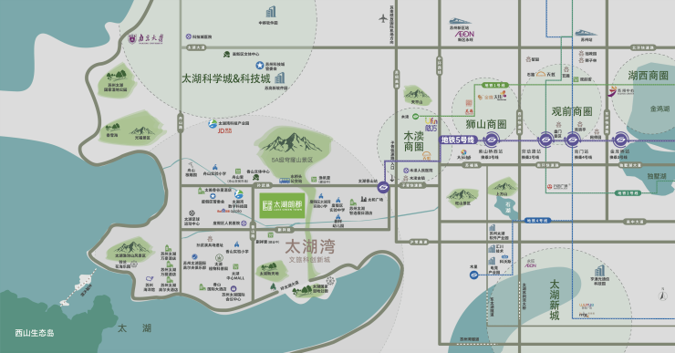 坐拥太湖湾C位生态资源,北靠穹窿山,南临太湖,背山面水,坐拥城市难得生态资源