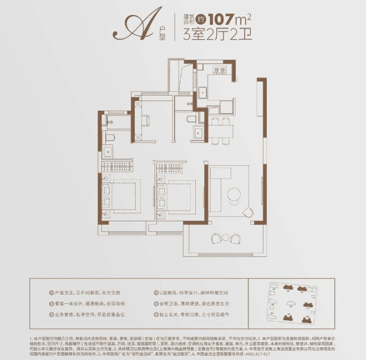 户型特点:三开间朝南,总面宽10.2米;客厅连接6.3米观景阳台;主卧套房+独立卫浴+衣帽间;得房率高达82%