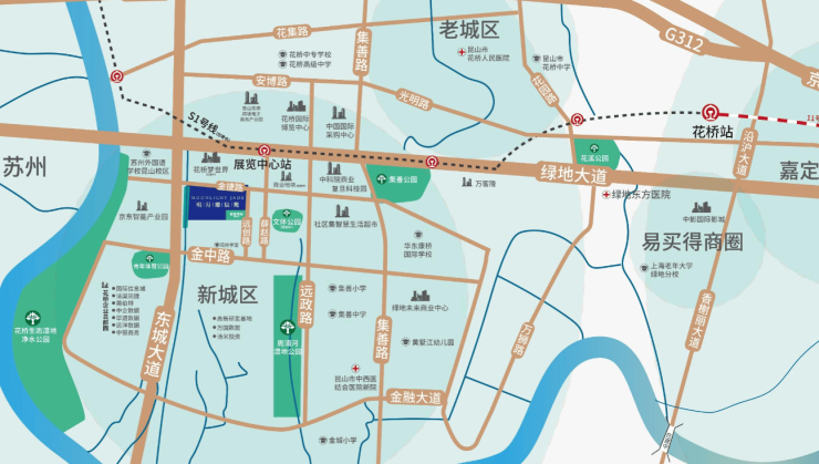 商业集群:2公里内汇聚中科创新广场、花桥梦世界、绿地未来中心等商业体,未来还将新增大型综合体。