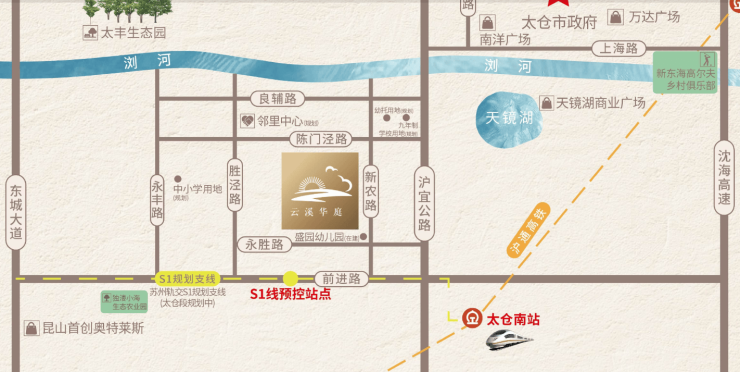 高铁通勤:直线距离太仓南站4公里,沪苏通铁路30min直达上海虹桥站,通勤效率媲美上海市区地铁出行。