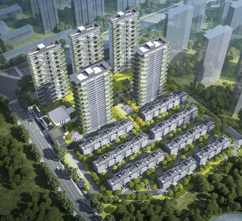 产品类型:包含8栋4层叠墅和5栋24-25层高层住宅。叠墅设计为上下叠结构,下叠附赠独立院子及挑空客厅,上叠则带有星空阁楼与露台;高层采用奇偶错层设计,奇数层南向、偶数层北向设有空中庭院,并融入垂直绿化元素