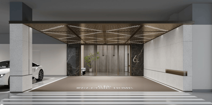 项目配备了地上、地下双挑高大堂,地下车库归家大堂入户前厅配置了星空顶,为每一位业主带来尊崇的归家礼序体验。