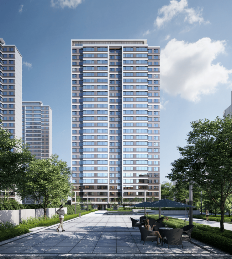 保利“天字系”高端产品,定位纯改善社区,外立面采用金属漆与铝板设计,内部规划架空层多功能空间及“一轴十景”园林